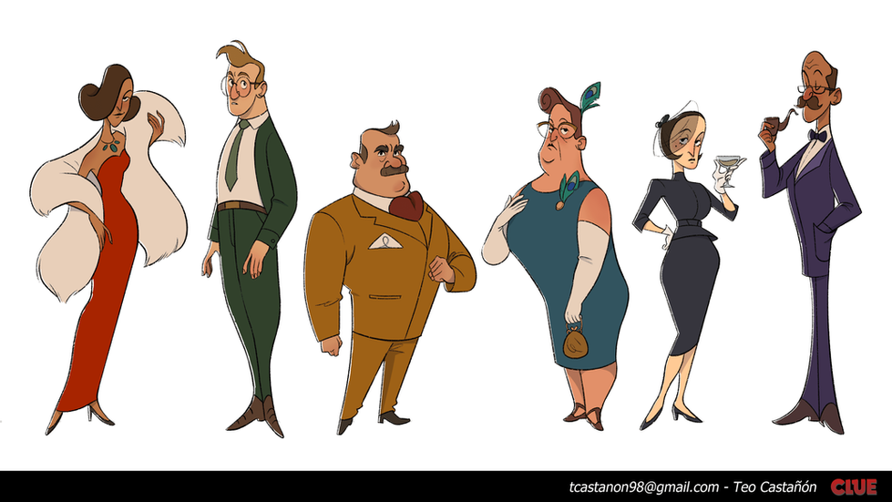 This project is a redesign of the characters from Clue. The game and film revolve around a murder mystery involving six guests who are anonymously invited to an old mansion and must cooperate to uncover the truth behind the host's unexpected murder. This project was developed under the guidance of artist Caleb Staker.